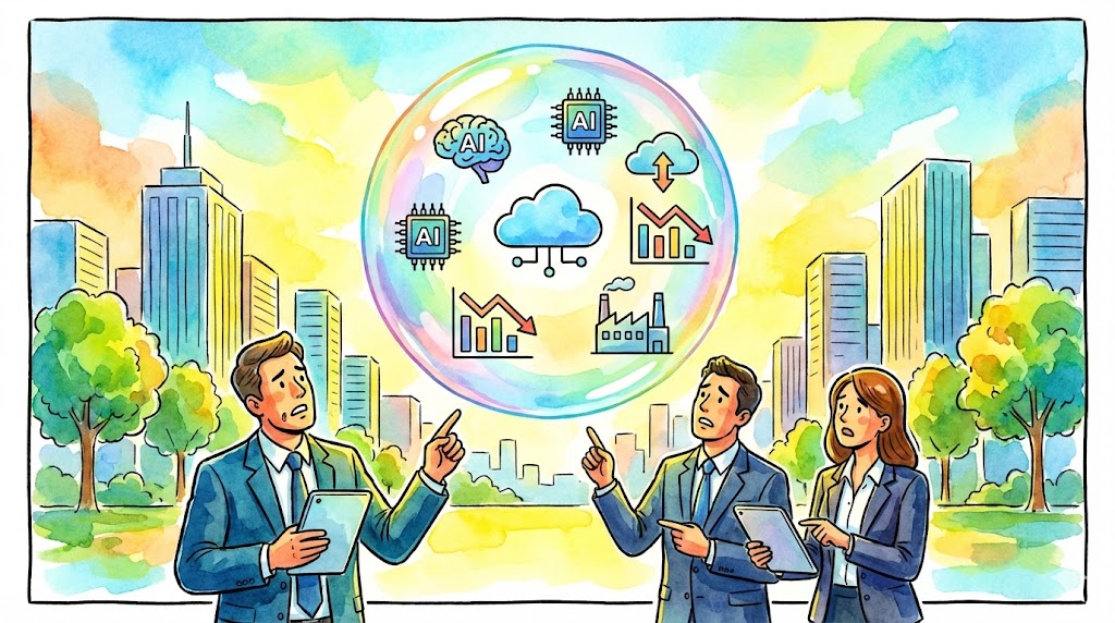 La Burbuja IA describe la desconexión entre las valoraciones astronómicas de las empresas de inteligencia artificial y sus ingresos reales. En 2025, la inversión global en IA supera los 600 mil millones de dólares, impulsada por el miedo a quedarse atrás (FOMO) más que por fundamentos financieros sólidos (P/L).